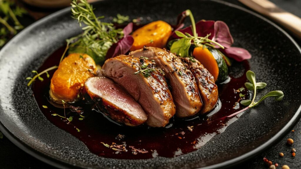 Le magret de canard, joyau de la gastronomie française, se marie admirablement avec des saveurs fruitées qui viennent rehausser sa